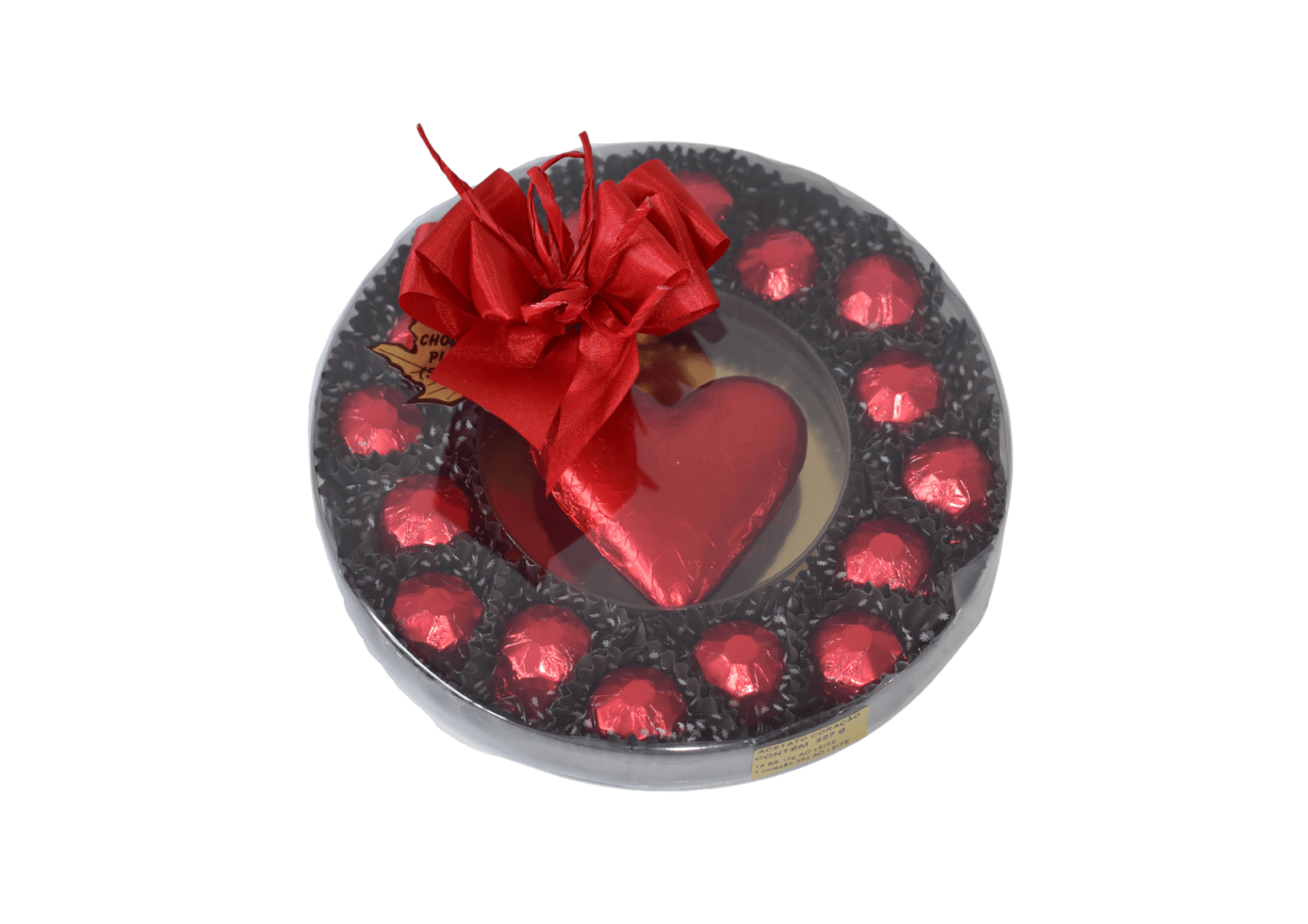 Contpem 16 bombons de 12g cada e 1 coração 35g.