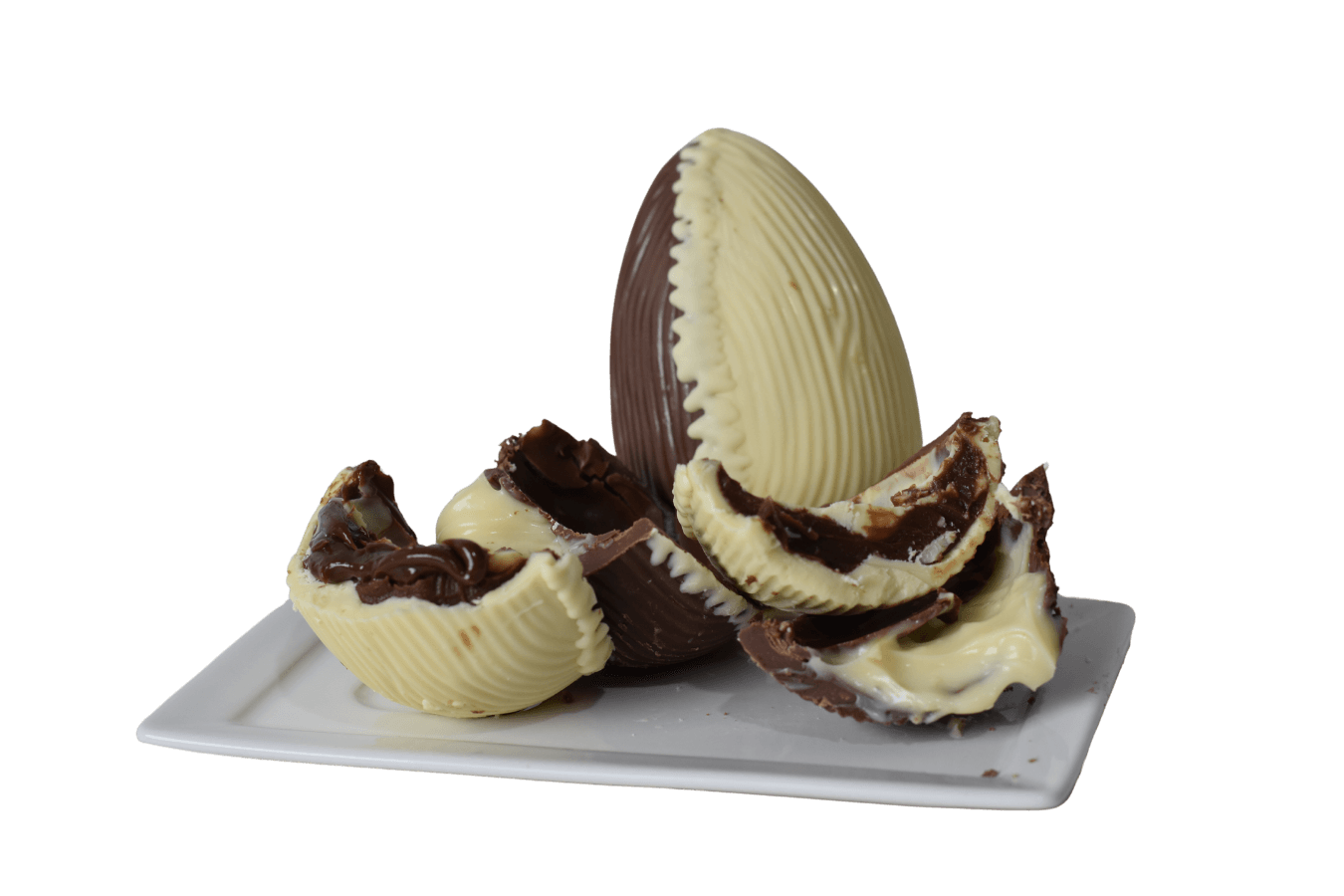 Criativa embalagem com visor que contém 2 ovos meio a meio,