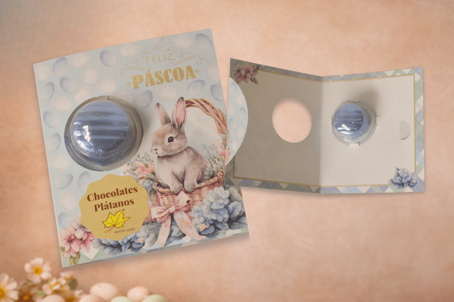 Linda embalagem em formato de cartão com saboroso bombom ao leite de 20g.
