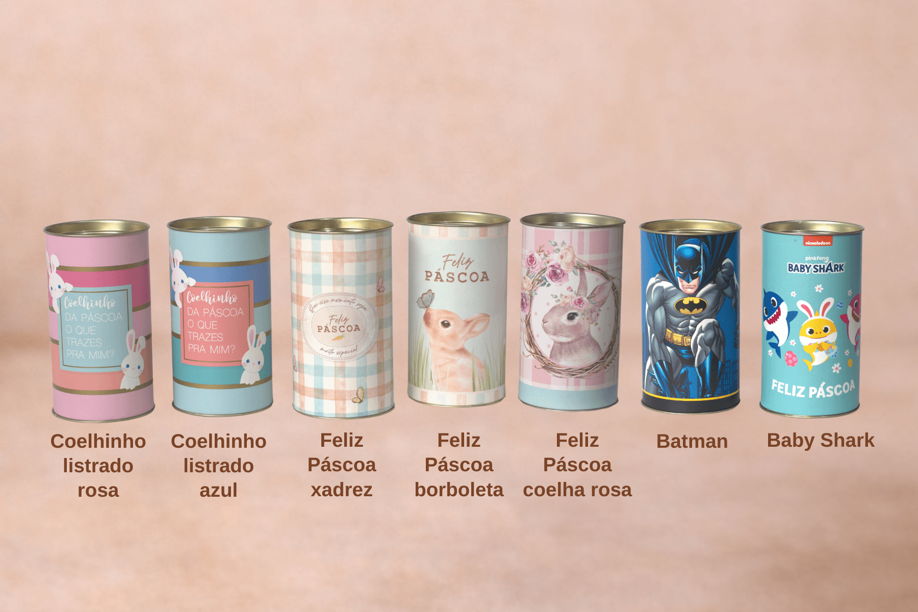 Lindo cilindro com tema Páscoa contendo 148g de chocolate ao leite, sendo