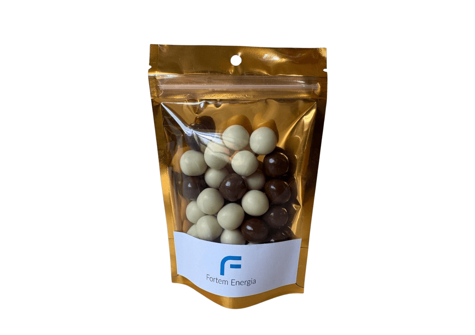 Pacote Zip Lock contendo 50g de drágeas mistas crocantes.