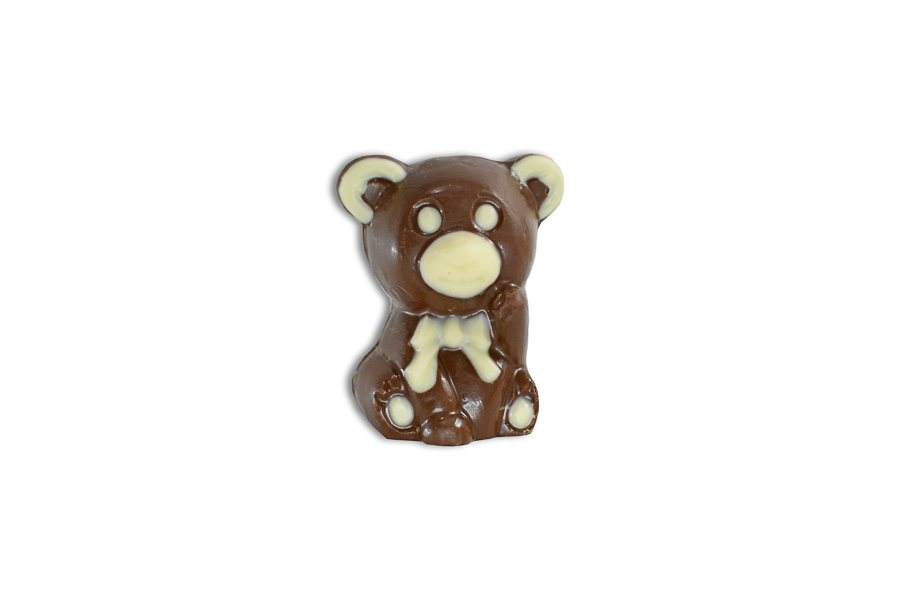 Lindo ursinho de chocolate ao leite com detalhes em chocolate branco.